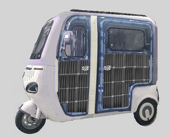 ソーラトライク "トーレソーラ" 1人乗ミニカー/4人乗トライク(独自簡易ドアー)/2.5x1.3x1.5m